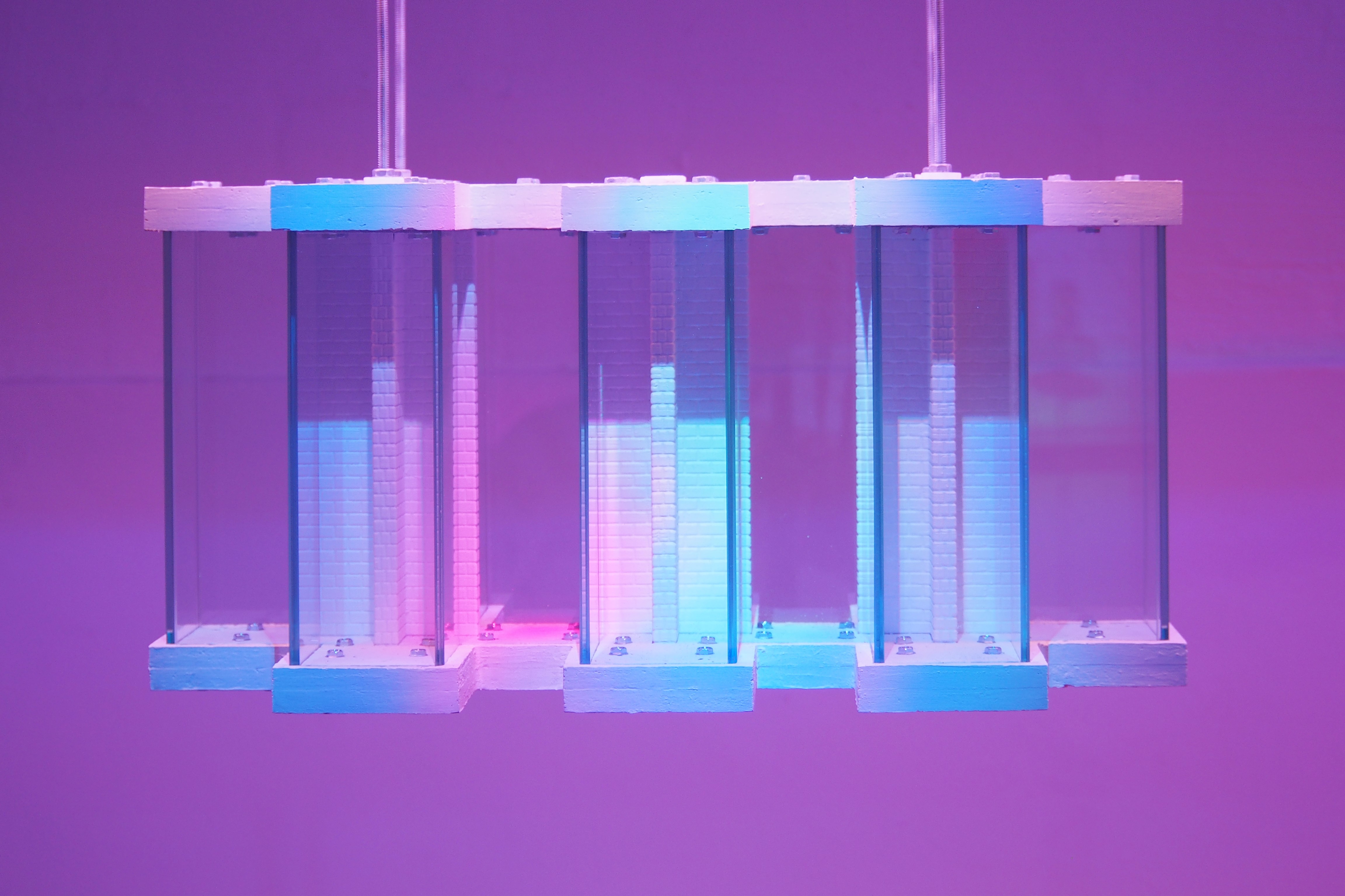 One-way mirror, stereolithography, 12V LED lights,