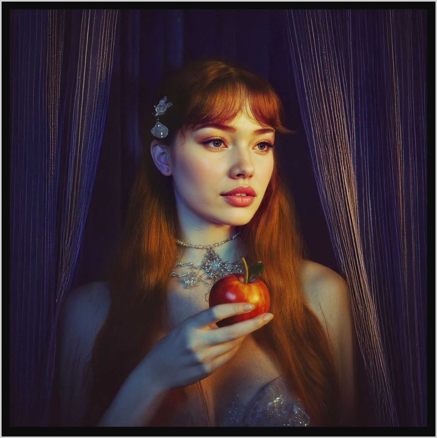 The apple, held delicately in Eva¡¯s hand, hints at the Tree of Knowledge, tying her existence to the pursuit of understanding and the allure of