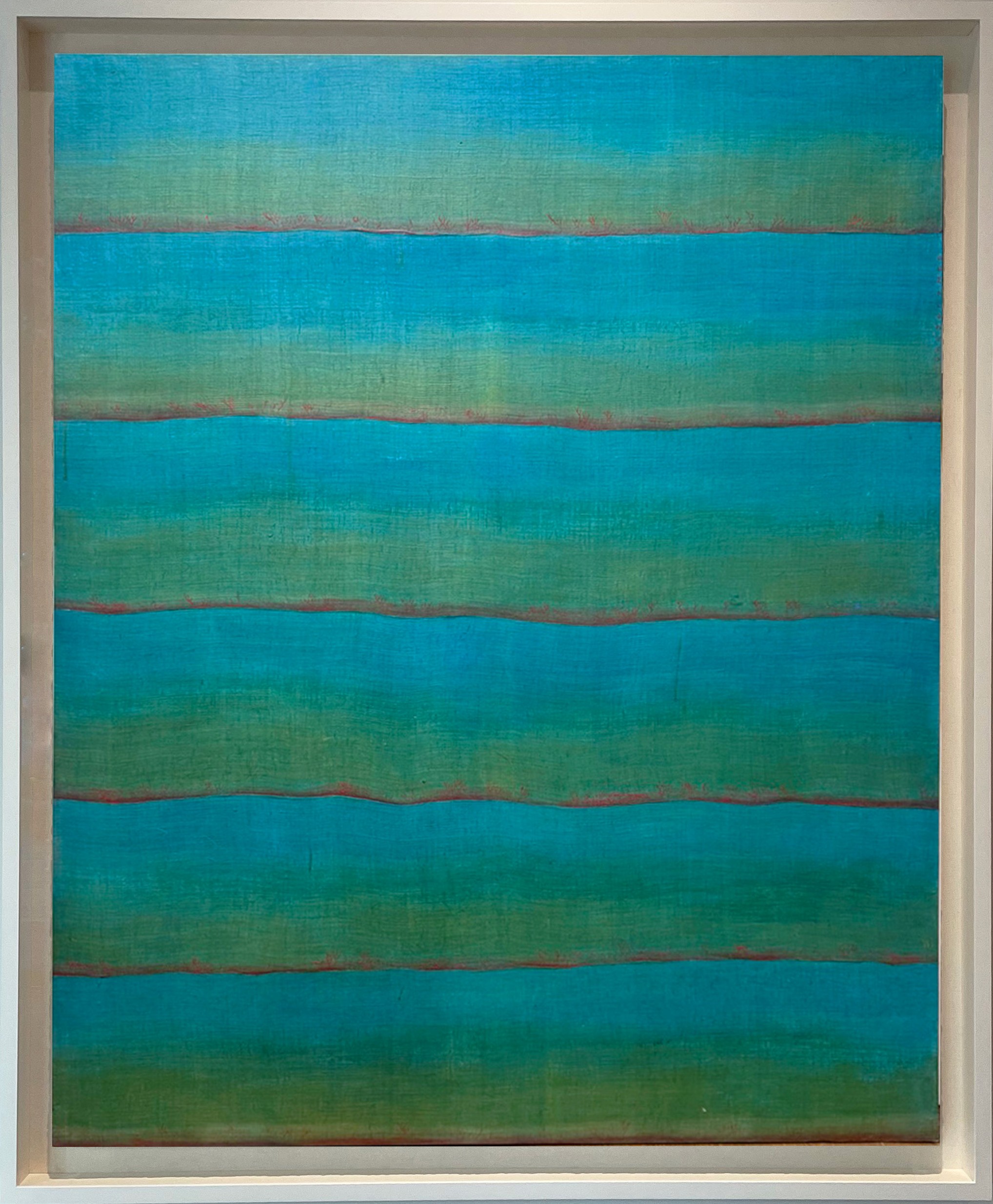 "Song of Fisherman" was originally a poem written by the poet Yoon Seon Do during the Joseon Dynasty. This poem portrayed a self-sufficient life, in which he escaped from the secular world to immerse himself in the beauty of nature. Yoon Seon Do's poetry has been reborn in the form of a painting by Jung Jong Mee. Her "Song of Fisherman" resembles a poem brought to life with paint. She intentionally employs traditional Korean materials and techniques to convey the essence of this beautifully written Korean poem through her work. In her paintings, she reinterprets the beauty of the landscape in a modern context while using the most traditional techniques and materials available.