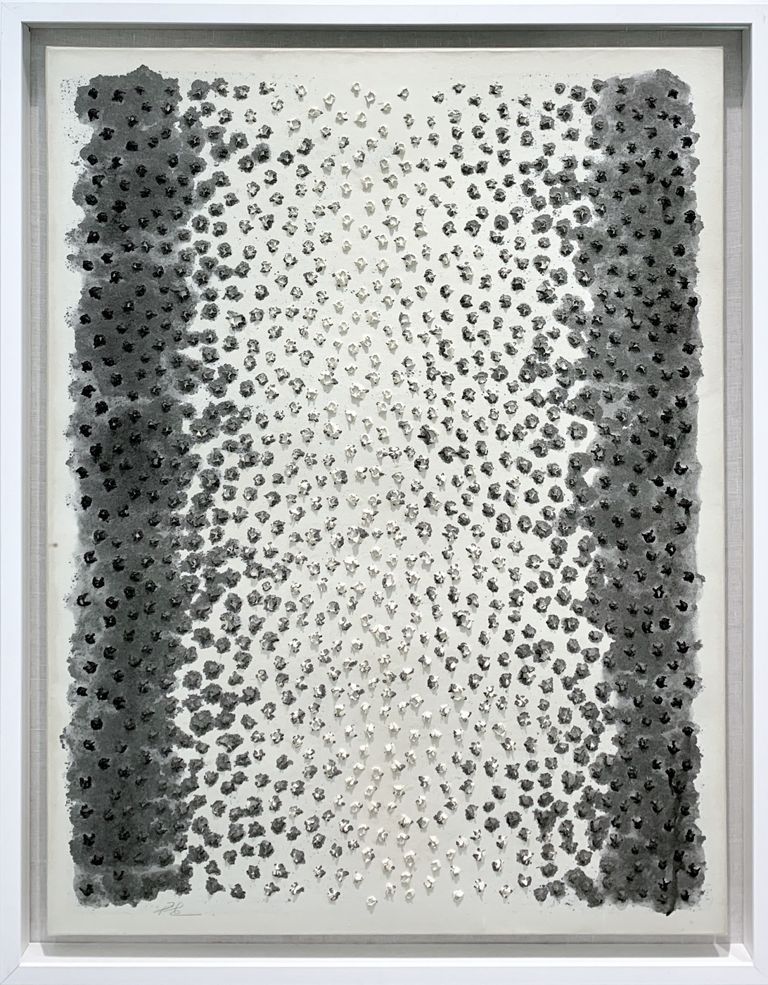 Kwon Young-Woo¡¯s works explore the relationship between traditional materials and abstract expression¡¡in the spirit of Dansaekhwa. Trained in traditional Chinese ink painting, Kwon built bridges through his art¡¡between Korea's avant-garde and Western movement of Abstract Expressionism. He switched over to¡¡working with the medium of hanji Korean mulberry paper during the early 1960s and experimented with¡¡its dimensional limits by using his fingers to puncture and scratch thin sheets, then by gluing the layers in¡¡multiple laminated stacks of varying thickness to produce three-dimensional relief sculptures. The details¡¡of the dynamic three-dimensional forms are all random, creating shadows that are unique by each¡¡manipulation. When the viewer takes in his works as a sum of its parts, there is an underlying sense of¡¡control to his manipulations that appears extremely well coordinated. In later works, Kwon would apply¡¡small amounts onto the torn edges of his works and allow it to seep into the paper over time.
